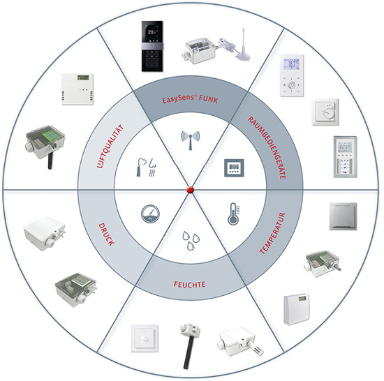 Vernetzte Gebäudeautomation ohne Kabel? Mit dem energieautarken Funksystem EasySens besteht die Möglichkeit, Geräte ohne das Verlegen neuer Leitungen im Gebäude zu platzieren und in die Gebäudeleittechnik einzubinden. Von der Raumbedienung und der Temperatur- bzw. Feuchtemessung über die Helligkeits- und Bewegungserfassung bis zur Zustandsüberwachung von Fenstern und Türen können Sender und Empfänger innerhalb der Gebäudeautomation selbstständig miteinander kommunizieren. Ebenfalls im Leistungs umfang enthalten sind diverse Regelungsfunktionen.
