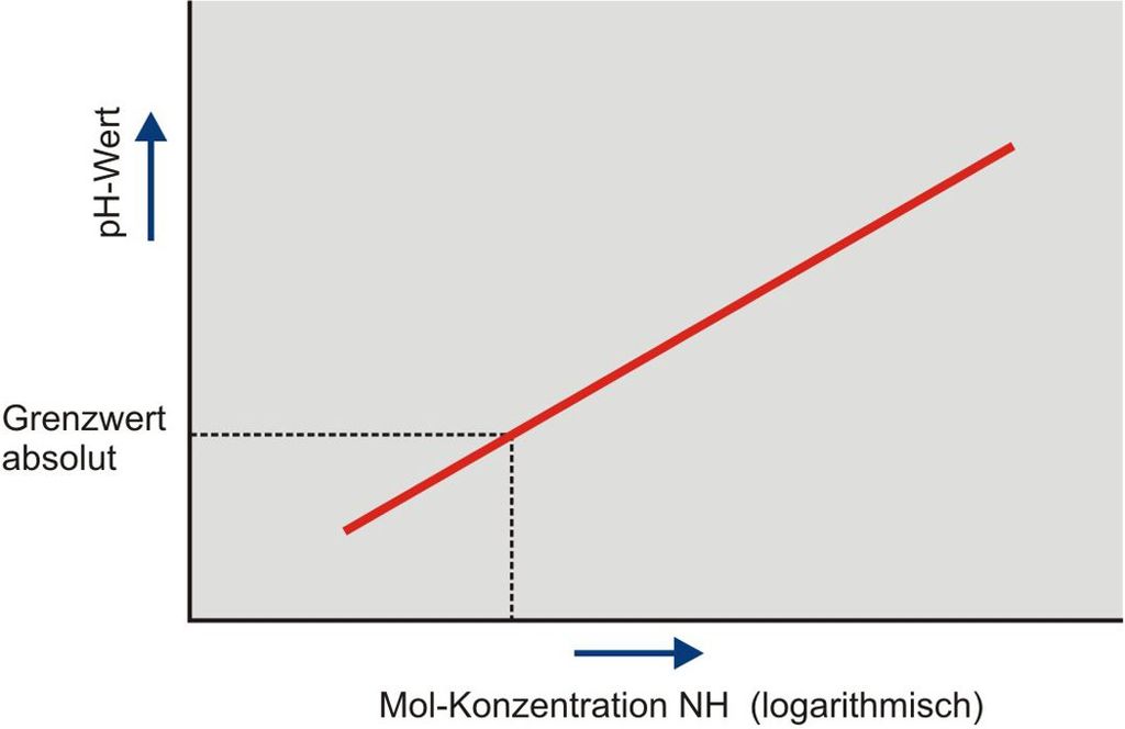 Kälte- und Kühlanlagen sollen die geforderte Kälteleistung erbringen und dabei sicher, umweltverträglich, wirtschaftlich und energieeffizient arbeiten. Das Kältemittel Ammoniak (NH 3 ) hat seit dem Verbot der Fluorchlor-Kohlenwasserstoffe (FCKW) und Halogenfluorchlor-Kohlenwasserstoffe (HFCKW) an Bedeutung gewonnen. Ammoniak liegt in Kühlkreisläufen teilweise als Flüssigkeit, teilweise als Gas vor. Unter Normalbedingungen (0 °C und 1 013 mbar) ist Ammoniak ein farbloses, giftiges und ätzendes Gas. Flüssig liegt es komprimiert oder tiefkalt vor (Verdampfungspunkt bei 33,4 °C, 1 013 mbar). Ammoniak ist in Wasser löslich und bildet dann Salmiakgeist. Auf Basis der Temperatur und der Mol- Konzentration des Ammoniaks im Wasser lässt sich der pH-Wert ermitteln (Bild 1).