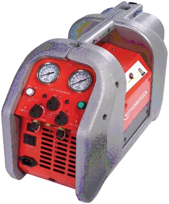 Herzstück des kompakten und leicht zu transportierenden Gerätes (19 kg) ist ein ölfreier Zwei-Kolben-Kompressor, der für hohe Ablaufleistungen sorgt. Sie betragen 0,52 kg/min (gasförmig), 2,89 kg/min (flüssig) und 7,27 kg/min im Push/Pull-Modus. Nebeneffekt der Zwei-Kolben-Technologie ist eine reduzierte Geräusch- und Vibrationsentwicklung. Daneben verfügt das Kältemittelabsauggerät über eine automatische Niederdruckabschaltung. Sobald das gesamte Kältemittel abgesaugt ist, schaltet sich das Gerät automatisch ab. Dies wird über eine grüne Kontrolllampe angezeigt. So läuft der Kompressor nie leer, was dessen Lebensdauer verlängert. Gleichzeitig muss der Absaugvorgang nicht ständig überwacht werden. Über die PURGE-Funktion (Selbstreinigungsmodus) werden Kältemittelrückstände im Gerät automatisch entleert. Ebenfalls für lange Lebensdauer ist der vierpolige 730 W-Motor ausgelegt. Dieser verfügt über ein erhöhtes Drehmoment. So wird, im Vergleich zu zweipoligen Motoren, die Drehzahl um die Hälfte reduziert.