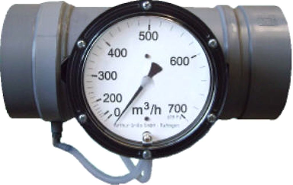 In diesem Beitrag wurde insbesondere die Niederdruck-Messung und Differenzdruckmessung erläutert. Höhere Druckbe-reiche, z. B. ab 1 bar, werden in der Regel mitsogenannten Drucktransducer-Messgeräten gemessen. Diese haben dann Keramik oderMetallsensoren. Der Einsatz dieser Geräte erfüllt nicht direkt vergleichbare Aufgaben. Abschließend wird noch auf die Luftmengenmessung hingewiesen. Gerade die hier beschriebenen Geräte werden in Luftmengen-Mess- und Überwachungseinrichtungen erfolgreich eingesetzt. Bild 7 zeigt hierzu ein praxisnahes Beispiel. -