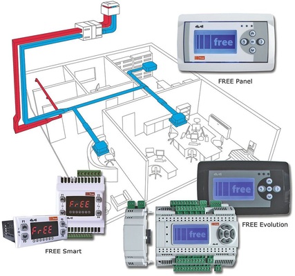 Free Way besteht aus der in allen Standard-Programmiersprachen vorliegenden freien Software Free Studio, den programmierbaren Reglern Free Smart, Free Panel und Free Evolution sowie aus verschiedenen Bediengeräten und Zubehör. Die beiden Reglerserien Free Evolution und Free Panel enthalten nun neue Web-Funktionen für den uneingeschränkten Fernzugriff.