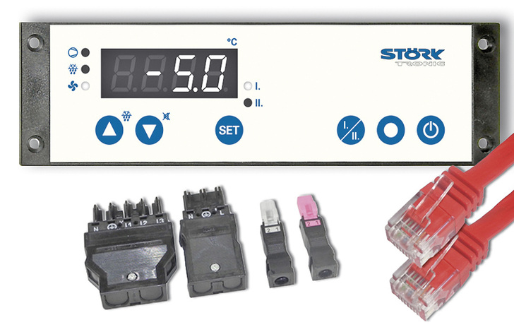 Abhängig von der Einbauvariante kann zwischen den Gehäuseformaten ST181 für den Frontaufbau und ST182 für den frontbündigen Einbau bei Edelstahltheken gewählt werden. Je nach Lüfter-Variante stehen Spannungsausgänge wahlweise für 24 VDC oder 230 VAC zur Verfügung, deren Drehzahl mittels Parameter in weiten Bereichen einstellbar ist. Der umfangreiche Parametersatz des Reglers gestattet eine große Funktionsvielfalt zur Regelung von einer oder zwei Kühlstellen. Durch den wählbaren Zweikreisbetrieb sind variable Kühlstellenkombinationen realisierbar, beispielsweise eine Kühltheke mit Auslage und Kühlfach bzw. Bierbegleitkühlung oder mit einer zusätzlichen Kühlwanne.