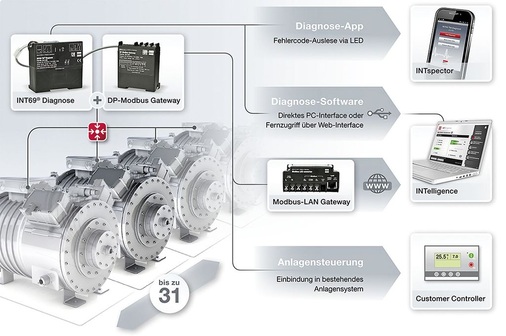 Die Diagnose-Schutzgeräte gibt es für fast alle Verdichter von Bitzer, Emerson, Bock, Frascold und weiteren Herstellern. Die Produktpalette ist vom Schutzgerät bis zum Modul für die Internetverbindung so konzipiert, dass nicht nur neue Verdichter direkt vom Hersteller ausgerüstet, sondern auch Bestandsanlagen im Feld einfach nachgerüstet werden können. Die Bauform der Gehäuse und die Grundfunktionen sind unverändert, nur die Diagnosefunktionen sind bei der neuen INT69-Generation hinzugekommen. Das eröffnet Möglichkeiten, nicht nur neue, sondern auch kritische Bestandsanlagen gezielt zu überwachen.