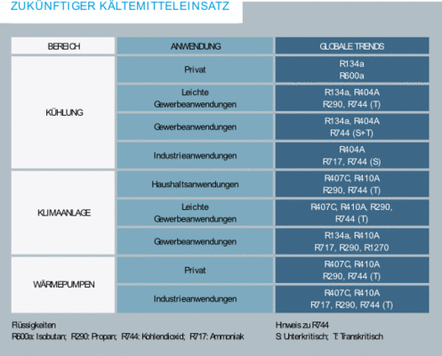 - Anwendung von Kältemitteln mit geringem Treibhauspotenzial