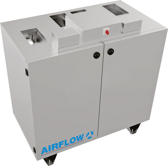 Mit vertikaler Stutzenanordnung und innenliegenden Registern für Kühler, Vor- und Nacherhitzer ist die Lüftungsgeräte-Serie Duplex Compact-V von Airflow besonders kompakt und für enge Einbausituationen geeignet. Die Geräte mit fünf Leistungsbereichen zwischen 400 und 3 500 m³/h Volumenstrom sind durch einen energieeffizienten Betrieb, Nutzerfreundlichkeit in der Installation und RD 5-Steuerung mit Anbindung an eine Service Cloud gekennzeichnet. Mittels Kreuzgegenstrom-Wärmeübertrager und Ventilatoren in EC-Technik laufen die Geräte energieeffizient: Der Wärmerückgewinnungsgrad beträgt bis zu 93 Prozent. Die RD 5-Steuerung mit integriertem Webserver zur Anbindung an die Service Cloud ermöglicht Fernzugriff und -diagnose. Als Schnittstelle in die Gebäudeleittechnik stehen Modbus sowie optional BACnet und KNX zur Wahl. Bei der Montage des Standgeräts kann die Zu-/Abluftseite in der Bediensoftware festgelegt werden. Ob Kühler, Vor- und Nacherhitzer: Die optionalen Register zur thermischen Luftbehandlung können schnell und einfach installiert aber auch später nachgerüstet werden. Zusammen mit der kompakten Bauweise durch die vertikale Stutzenanordung wird eine platzsparende, einfache Plug & Play-Installation auf engem Raum möglich.