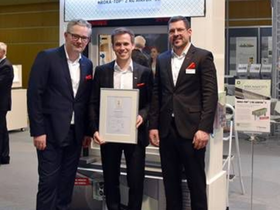 Geschäftsführer Philipp Beck sowie Matthias Gangeler, Vertriebsleiter Deutschland, nahmen die Auszeichnungsurkunde am 14. Januar 2019 im Rahmen der feierlichen Preisverleihung auf der BAU in München entgegen.