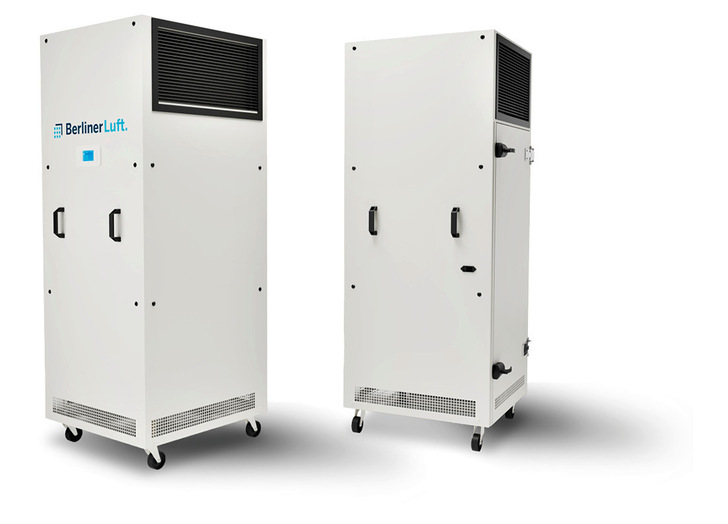 Der Luftreiniger BerlinerLuft.Pure saugt aerosolbelastete Raumluft an, filtert sie zweifach mechanisch und behandelt sie anschließend mit UV-C - Strahlung. Er arbeitet mit maximal 39 dB(A), ist dank Rollen mobil und passt durch jede Standard-Tür. In Bezug auf Corona-Viren bescheinigt das Fraunhofer Institut dem Luftreiniger eine Abscheideleistung von 99,9 %. Die gereinigte, von Aerosolen befreite und desinfizierte Raumluft wird dem Raum anschließend wieder zugeführt. Je nach Einstellung erfolgt pro Stunde ein zwei- bis siebenfacher Luftwechsel. Der Pure arbeitet mit einer Reinigungsleistung von bis zu 1600 m3/h. Als Beispiel: In einem Raum mit 75 m2 Grundfläche und einer Höhe von 3,25 m schafft der Luftreiniger somit einen sechsfachen Luftwechsel.