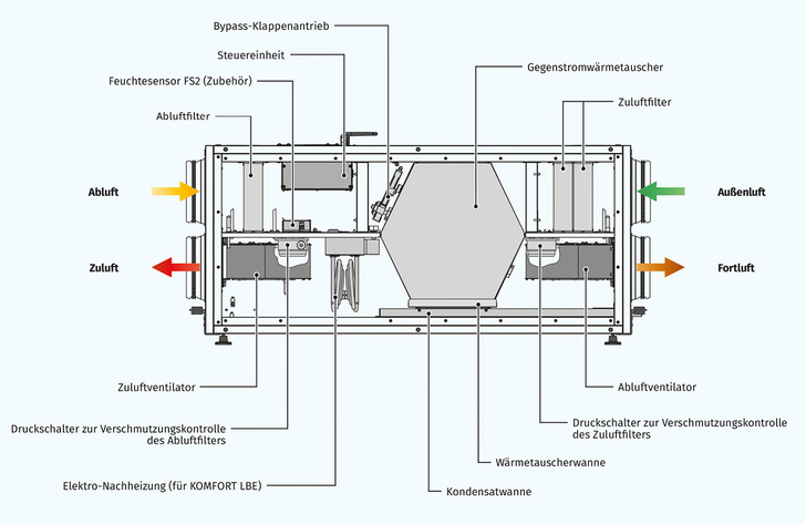 Blauberg hat eine neue Serie zentraler Lüftungsanlagen mit Wärmerückgewinnung entwickelt, die besonders für die Belüftung von Häusern in Bungalow-Bauweise, Büroräume sowie öffentliche und industrielle Einzelräume geeignet sind. Die Serie „Komfort EC LB“ bietet eine Förderleistung von bis zu 830 m³/h und erreicht eine Wärmerückgewinnungseffizienz von bis zu 89 Prozent. Durch den Einsatz eines optionalen Elektro-Nachheizregisters kann dieser Wert auf bis zu 98 Prozent erhöht werden. Die Anlagen sind in vier Varianten erhältlich, die entweder mit einem Gegenstrom-Plattenwärmetauscher aus Polystyrol oder einem Enthalpie-Wärmetauscher ausgestattet sind. Beide Modelle können optional mit einem Elektro-Nachheizregister versehen werden. Die Polystyrol-Wärmetauscher trennen Zu- und Abluft vollständig voneinander, sodass keine Gerüche oder Schadstoffe in die Zuluft gelangen. Bei der Variante mit Enthalpie-Wärmetauscher wird zusätzlich Feuchtigkeit zurückgewonnen, sodass kein Kondensat entsteht. Alle Anlagen sind mit zwei integrierten Luftfiltern (G4 und F 7) ausgestattet, die für eine Reinigung der Zuluft sorgen. Ein weiterer G4-Filter reinigt die Abluft, um eine Verschmutzung der Lüftungsrohre zu verhindern. Das doppelwandige Gehäuse aus Alu-Zink mit einer 40 mm dicken Isolierung aus Mineralwolle sorgt für eine effiziente Schall- und Wärmedämmung. Der Schalldruckpegel beträgt maximal 24 bis 31 dB(A), was einem sehr leisen Betrieb entspricht. Elektronisch kommutierte Motoren sorgen für einen konstanten Luftstrom. Die Montage der Anlagen ist flexibel, da die Wartungsseite frei gewählt werden kann. Die Geräte sind für den Anschluss an Lüftungsrohre mit einem Durchmesser von 160, 200 oder 250 mm ausgelegt. Vibrationsabsorbierende Verbindungen erleichtern die Montage an Boden oder Decken. Die Steuerung erfolgt über die integrierte S 21-Steuerplatine, die mittels einer App für Android- oder iOS-Geräte bedient werden kann.