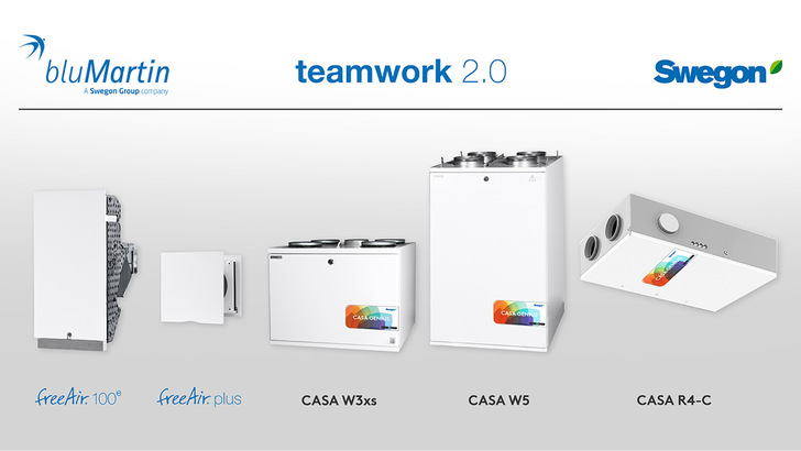 Ab sofort werden auch die Swegon Casa Produkte von bluMartin vertrieben. Die Lüftungsgeräte W3xs, W5 und R4 - C erreichen einen Luftvolumenstrom von bis zu 500 m3 pro Stunde und sind kurzfristig lieferbar. BluMartin bietet auch ein Rohbauset für die Lüftungsgeräte. Aufwendiges Aufstemmen der Außenwand ist nicht erforderlich, denn das Rohbauset wird mithilfe einer 350 mm Kernbohrung in die Wand integriert. Abluftleitungen werden durch eine Rohbauverkleidung oder das Schnellbausystem Trockenbau verkleidet. Das freeAir Lüftungsgerät wird einfach in das Rohbauset eingesetzt und startet den Betrieb per Plug-and-Play.