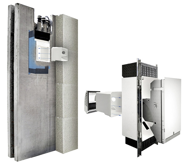 Der Lüftungshersteller bluMartin hat das Rohbauset-Fertigwand speziell für diese Bauweise neu entwickelt. Es eignet sich für die gängigen Fertigwände ab 200 mm Wandstärke. Für die Planung und Visualisierung stehen 3D und BIM Daten zur Verfügung. Das Rohbauset wird bereits bei der Fertigung in die Wände eingesetzt und verfügt über abnehmbare Fertigwand-Adapter. Die Lüftungsleitungen werden ebenfalls werkseitig in die Wandelemente integriert. Somit erfolgt auf der Baustelle die Endmontage und Inbetriebnahme des freeAir 100 Lüftungsgeräts per Plug and Play. Zum Einsatz kommt das freeAir 100 Lüftungsgerät mit der Bedarfsführung, die das Gerät volumenkonstant arbeiten lässt. Die Steuerung erfolgt über acht Sensoren unter anderem für Feuchte, CO2- Gehalt und Temperatur.