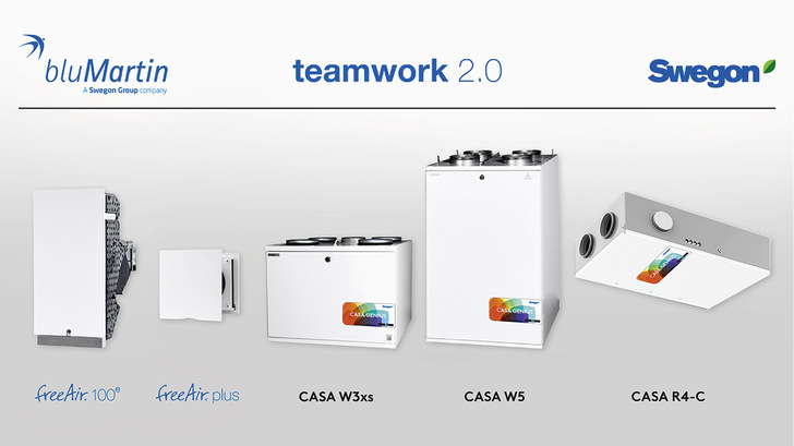 Durch die Einführung der CASA- Geräte auf dem deutschen Markt kann bluMartin nun Anwendungen im Residential Bereich abdecken. Die CASA Lüftungsgeräte W 3xs, W 5 und R 4-C erreichen einen Luftvolumenstrom von bis zu 500 m³ pro Stunde und sind kurzfristig lieferbar. Das freeAir plus Lüftungsgerät ist eine Erweiterung des freeAir Lüftungssystems und bringt weitere Räume mit an die Lüftung. Die Räume werden durch den aktiven Überströmer an das Lüftungsgerät angebunden, ohne dass Lüftungsleitungen verlegt werden müssen. Das Gerät arbeitet mit einer Wärmerückgewinnung von bis zu 95 Prozent. Die Installation des freeAir plus erfolgt durch das Rohbauset von bluMartin. Dieses wird durch eine 350 mm Kernbohrung in die Außenwand integriert. Abluftleitungen werden durch eine Rohbauverkleidung oder das Schnellbausystem Trockenbau dezent verkleidet.
