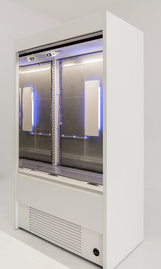 Für die Lagerung gekühlter Lebensmittel in einer hygienisch sauberen Atmosphäre in Kühlmöbeln ist das Produkt Tube von Cool + Call vorgesehen. Es eignet sich für die einfache Nachrüstung und wird an der Rückwand in den zirkulierenden Luftstrom montiert. Der desinfizierende Effekt wird beim Überströmen durch eine sterilisierende UV-C-Lampe in Kombination mit einer speziellen Oberflächenbeschichtung der Blechteile erzielt. Die freigesetzten Hydroxyl-Radikale inaktivieren 99,9 Prozent aller schädlichen Mikroorganismen wie Viren, Schimmelpilze und Bakterien auf den inneren Oberflächen eines Kühlmöbels und der darin gekühlten Lebensmittel. Der Reinigungseffekt wirkt sowohl bei verpackten, als auch frischen Produkten. Tube ist für jede Kühlmöbelgröße in den drei Leistungsklassen 24, 55 und 80 W zu haben.