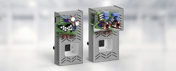 Für Luft-Wasser-Wärmepumpen bietet ebm-papst effiziente und leise EC Radial- und Axialventilatoren für die Innen– sowie Außenaufstellung an. Aufgrund der Erfahrung mit EC-Motoren, deren Kommutierungselektronik und Wärmepumpenanwendungen wurde jetzt eine Inverter-Elektronik entwickelt, die sich unter anderem für drehzahlgeregelte permanentmagneterregte Synchronmaschinen (PSM) eignet, wie sie typischerweise in Verdichtern zum Beispiel bei Wärmepumpen eingesetzt sind. Die neue Elektronik gibt es mit Ausgangsleistungen bis 3,5 kW, 7,5 kW und 12 kW. Außerdem erkennen die Ansteuerungen, ob sie ein- oder dreiphasig betrieben werden, und schalten automatisch um, je nachdem welche Spannungsform in der Wärmepumpe zur Verfügung steht. Ebenfalls flexibel zeigt sich die Elektronik im Hinblick auf ihre Kühlung. Wasser und Luftkühlung sind durch den modularen Aufbau genauso möglich wie eine Cold-Plate-Anbindung.