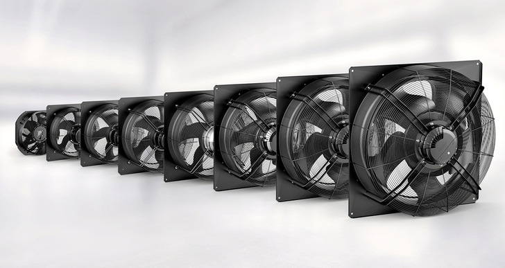 Axialventilatoren werden normalerweise überall dort eingesetzt, wo hohe Volumenströme bei eher niedrigem Druck benötigt werden. Die AxiEco Axialventilatoren eigenen sich jedoch für Anwendungen, die einen hohen Druck erfordern. Die Luftleistungskennlinie verläuft steiler als bei vergleichbaren Axialventilatoren. Die bestehende EC-Ventilatorenbaureihe AxiEco mit den Baugrößen 300, 350, 400, 450 und 500 mm wurde um die drei Baugrößen 630, 800 und 910 mm erweitert, so dass noch höhere Volumenströme von über 25.000 m³/h und Drücke von bis zu 700 Pa realisiert werden können. Alle AxiEco Ventilatoren erfüllen die Anforderungen der zukünftigen ErP-Richtlinie und lassen sich als kompakte Lösung mit CE Kennzeichnung in die Anwendungen integrieren.