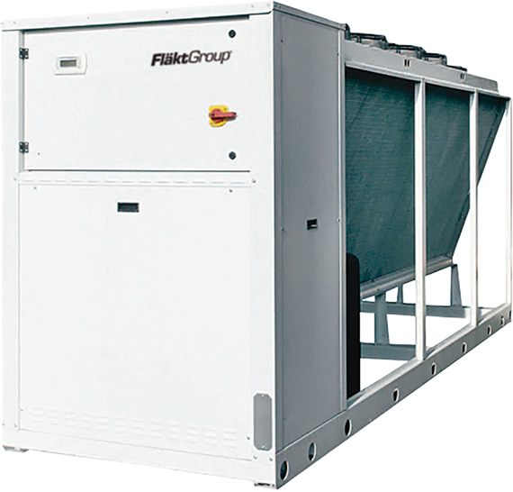 Von Fläkt kommen die luftgekühlten Inverter-Kaltwassererzeuger FGAC1015-2050AD1/2 mit Kälteleistungen von 44 bis 130 kW mit hoher Effizienz im Teillastbetrieb. Dazu erfolgt die Leistungsanpassung durch Drehzahlregelung eines Inverter-Verdichters. Somit wird in einem weiten Arbeitsbereich passgenau die geforderte Kälteleistung bereitgestellt. Durch die modulierende Betriebsweise erhöht sich die saisonale Energieeffizienz (SEER) um weitere 10 Prozent gegenüber An/Aus-Verdichtern. Alle Gerätevarianten erreichen SEER-Werte > 4,1 bzw. µs,c-Werte > 161 Prozent und erfüllen dadurch die zweite Stufe der ERP-Richtlinie EU 2016/2281 (ab Anfang 2021). Durch den optionalen Einsatz von EC-Ventilatoren ist eine weitere Steigerung der SEER-Werte um bis zu 6 Prozentpunkte möglich. Die acht Kaltwassererzeuger gibt es auch in einer leiseren Version (−7 dB(A). Alle haben einen bis zwei Scroll-Verdichter, davon einen mit Inverter, ein elektronisches Expansionsventil sowie Micro-Channel Verflüssiger. Sie decken einen Einsatzbereich von −20 bis +47 °C ab und es sind Wassertemperaturen von −8 bis +18 °C möglich. Eine energieeffizientere Kaltwasserzirkulation wird durch optionale drehzahlgeregelte Pumpen mit Motoreffizienzklasse > IE4 ermöglicht. Durch die intelligente Reglerlogik lässt sich die Primärkreispumpe zyklisch abschalten, sobald keine Kälte durch die Verbraucher abgenommen wird. Mithilfe des optionalen Enthitzers kann ein Teil der abgeführten Wärme zurückgewonnen werden. www.flaktgroup.de