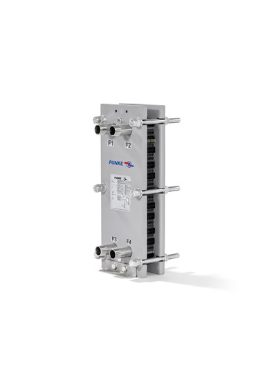 Gedichtete Plattenwärmeübertrager FP 2000 (Anschlüsse DN 50) und FP 4000 (Anschlüsse DN 100) von Funke wurden thermisch und hydraulisch optimiert, was die Wärmeübertragung verbessert und den Druckverlust vermindert. Dabei wurden die äußeren Abmessungen und die Anschlussmaße nicht verändert. Dadurch lassen sich die Platten nutzen, ohne in neue Gestelle investieren zu müssen. Für die bessere Wärmeübertragung gibt es zudem ein neues Bypass-Stop-System. Ein sogenanntes Clip On bewirkt einen guten Sitz der Dichtungen auch nach mehrmaligem Öffnen der Plattengestelle. Die höhere Druckbeständigkeit ist ein weiteres Merkmal der Wärmeübertrager, die kompakter sind als ihre Vorgängermodelle.