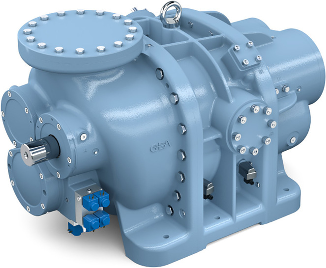 Die Kolbenverdichter-Modelle GEA Grasso V 700, V 1100, V 1400 und V 1800, die bisher mit einer maximalen Drehzahl von 1200 min-1 betrieben wurden, können nun mit NH 3 bis zu 1500 min-1 laufen. Bei den GEA Grasso LT-Schraubenverdichtern (Bild) der Typen R, S und T wird die zulässige Drehzahl für NH 3 von bisher 3600 auf 4500 min-1 erhöht. Wartungsintervalle müssen nicht häufiger vorkommen. Die Freigabe der neuen Höchstdrehzahlen gilt daher auch für blanke Verdichter und für Verdichteraggregate. Aufgrund des proportionalen Zusammenhangs zwischen Verdichterdrehzahl, Hubvolumen und resultierender Kapazität können nun 25 Prozent mehr Kapazität mit den gleichen Modellen erreicht werden. Schraubenverdichter können in einem größeren Drehzahlbereich besser geregelt werden, was zu verbesserten Teillastwirkungsgraden führt. Höhere Drehzahlen ermöglichen zudem den Einsatz kleinerer Kompressoren. Auf diese Weise lassen sich bis zu 20 Prozent der Kosten für Stellfläche, Konstruktion, Rohrleitungen und elektrische Anordnung sparen.
