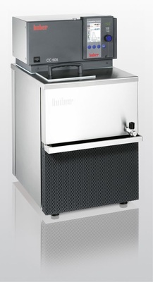 Die Kälte-Umwälzthermostate bei Huber Kältemaschinenbau bekommen Zuwachs mit dem neuen Modell CC-508. Der Thermostat eignet sich sowohl zum Temperieren von extern angeschlossenen Anwendungen als auch zur Temperierung von Objekten direkt im Thermostatenbad. Der Kältethermostat arbeitet bei Temperaturen von 55 bis +200 °C mit einer Heizleistung von 3 kW und einer Kälteleistung von 1,5 kW (bei 0 °C). Die Umwälzpumpe ist stufenlos einstellbar und erreicht Leistungen von 33 l/min; 0,7 bar (druckseitig) und 22 l/min; 0,4 bar (saugseitig). Auch die übrige Ausstattung genügt hohen Ansprüchen dafür sorgt der professionelle Funktionsumfang des CC-Pilot-Reglers mit Farbdisplay, Programmgeber, Pt 100-Externfühleranschluss, Kalibrierung, Kalender-/Uhrfunktionen, Autostart, RS 232-Schnittstelle sowie umfangreichen Sicherheits- und Warnfunktionen. Das Gehäuse ist aus hochwertigem Edelstahl und besitzt eine temperierte Abdeckplatte zur Vermeidung von Kondensation und Eisbildung. Das Badgefäß hat ein Volumen von fünf Litern und kann über den frontseitigen Ablaufstutzen entleert werden.