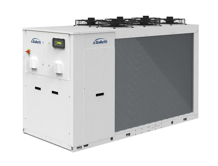 Die luftgekühlten Kaltwassersätze und reversiblen Wärmepumpen der Baureihe PLE arbeiten mit dem A2 L-Kältemittel R 454B. Das Sortiment besteht aus zehn Modellen mit Kühlleistungen von 50 bis 160 kW, die als reine Kühl- oder reversible Wärmepumpenversionen erhältlich sind. Die Geräte können Wasser von -10 °C bis 55 °C bereitstellen und bei Volllast mit Außenlufttemperaturen von -12 °C bis 46 °C arbeiten. Die gesamte Baureihe der Kaltwassergeräte ist standardmäßig mit Microchannel-Verflüssigern ausgestattet. Das reduziert die Kältemittel-Füllmenge um 40 Prozent. Die Scroll-Verdichter sind für den Betrieb mit R 454B ausgelegt, auf schwingungsdämpfenden Halterungen installiert und mit einem IDV-Ventil ausgestattet (Intermediate Discharge Valve). Das spart Überkompressionsverluste und damit Energie. Der saisonale und Teillast-Effizienzgrad wird um bis zu 10 Prozent erhöht.