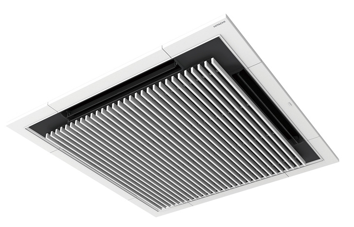 Die Silent-Iconic Designblende ist das Ergebnis einer Entwicklung, die 1983 ihren Ursprung hat. Die vier Luftauslässöffnungen sind so konzipiert, dass sie trotz ihrer reduzierten visuellen Wirkung durch den Coanda-Effekt eine zugfreie Luftverteilung gewährleisten. Die zentrale Lufteintrittsfläche ist durch geradlinige Lamellen verdeckt und rückt optisch in den Hintergrund, zusätzlich wird ihre Präsenz durch die Verdunkelung des Luftauslasskanals reduziert. Eine kleine Schattenfuge zwischen dem Paneel und der Decke kaschiert kleine Unebenheiten und sorgt für einen fließenden Übergang. Die Blende ist in Weiß und Schwarz erhältlich, außerdem gibt es eine weiße Version mit integrierter Liftfunktion für den Tausch des Luftfilters. Mit der optionalen Blende kann das Filterelement zu Servicezwecken mithilfe der Fernbedienung bis zu 4 m heruntergelassen werden. Durch die Schiebeecken wird bei der Montage der Zugang zur Justierung der Gerätebefestigung erleichtert. Die webbasierte Anwendung Web AR (Augmented Reality) ermöglicht dem Nutzer, sich vor dem Kauf ein Bild davon machen kann, wie sich die Blende in seine Räumlichkeiten integriert. Dafür muss man nur den QR-Code der gewünschten Blendenausführung mit dem Smartphone oder Tablet (nur iOS) scannen, und die Blende wird virtuell in die Decke eingesetzt. Für eine möglichst realistische Ansicht sind zudem Schiebe-, Dreh- und Zoomfunktionen integriert. Die Feinfilter der Filterklasse ePM1 55 % nach DIN EN ISO 16890 für Klimageräte von Hitachi helfen dabei, die Feinstaubbelastung in Innenräumen zu reduzieren. Es werden unter anderem Pollen, Staub, Viren, Bakterien, Schimmelsporen und Abgase aus der Raumluft entfernt. Die Filter stehen optional zur Verfügung und können ohne zusätzliches Werkzeug mit nur wenigen Handgriffen in die neuen Designblenden eingesetzt werden. Die Verbindung eines traditionellen Geräts mit einer neuen Ästhetik führte zu mehreren Auszeichnungen. Darunter zählen der reddot Award 2021 in der Kategorie “best of the best”, der iF Design Award 2020 (Kategorie: Produkt) und der Good Design Award 2020 (Kategorie: Geräte und Einrichtungen für den professionellen Gebrauch).