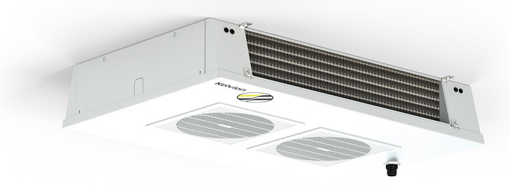 Kelvion hat seine drei CO2-Luftkühlermodelle KDC um eine 90-bar-Betriebsdruck-Variante ergänzt. Nach dem zweiseitig ausblasenden Deckenluftkühler KDC (max. Kapazität 23 kW) sind nun auch der Hochleistungsluftkühler market SP (max. Kapazität 50 kW) und der Deckenluftkühler compact DF (max. Kapazität 11 kW) im Programm. Die drei Luftkühler sind für Kälteanwendungen konzipiert, unter anderem in Supermärkten, Verteilzentren und Lagerräumen.