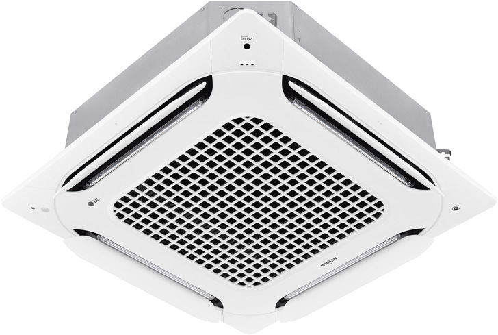 Zu drei neuen Inneneinheiten von LG Electronics gehören das Wandgerät Deluxe Air Purification mit integriertem Luftreiniger, ein rundes Unterdeckengerät insbesondere für offene Decken und die 4-Wege-Deckenkassette Dual Vane (Bild) mit verbessertem Luftstrom. Das Wandgerät eignet sich für Single- und Multi-Split-Klimasysteme, arbeitet mit dem Kältemittel R 32 und ist mit einer Leistung von 2,6 oder 3,5 kW zu haben. Als Kombination aus Inneneinheit und Luftreiniger übernimmt es neben der Klimatisierung auch die Filterung von Keimen und Pollen aus der Raumluft. In der Inneneinheit ist ein PM 1.0-Sensor integriert, der Belastungen der Luft erkennt und das Feinstaubfiltersystem mit Ionen-Diffusor automatisch aktiviert. Mittels indirektem Luftstrom mit vier Strömungsrichtungen erreicht kühle Luft bei Bedarf den ganzen Raum. Das runde und platzsparende Unterdeckengerät ist für VRF-Systeme konzipiert und in den Leistungsstufen 7,1 kW, 10,6 kW und 14,1 kW zu haben. Erzeugt wird ein runder Luftstrom ohne Totpunkte. Der größere Luftdurchsatz steigert die Kühlrate um 30 Prozent. Die 4-Wege-Kassette (Kältemittel R 32, Leistung ab 7 kW) eignet sich für Single-Split-Klimasysteme. Per Lamellensystem lässt sich durch einen vergrößerten Einlassbereich der Luftstrom erhöhen und ein breiterer sechsstufiger Öffnungswinkel von 10 bis 85 ° erlaubt eine bessere Steuerung. Bei einem optionalen vierstufigen Luftreinigungssystem strömt die Luft zunächst durch einen Vorfilter, danach durch einen Staubelektrifizierungsschirm, dann durch ein Feinststaub-Kit und schließlich durch einen photokatalytischen Desodorierungsfilter.