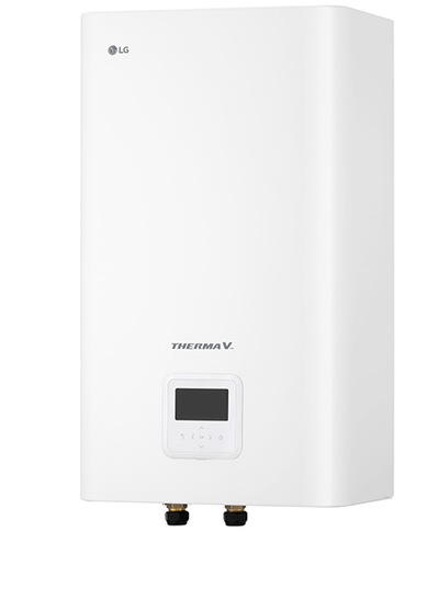 Der Therma V Hydrosplit gehört zu den Luft-Wasser-Pumpensystemen (AWHP) von LG, welche Luft als Wärmequelle nutzt. Bestehend aus einem Innengerät und einem separaten Außengerät, das über einen eingebauten Plattenwärmetauscher (PHEX) verfügt. Da beide Geräte nur durch eine Wasserleitung verbunden sind, gelangt selbst im Falle einer Leckage kein Kältemittel in den Wohnraum. Durch den Verzicht einer Kältemittelleitung ist die Installation auch ohne Kälteanlagenbauer möglich. Ausgestattet mit dem R 1-Kompressor bietet das Gerät auch bei -25 °C eine Wasseraustrittstemperatur von bis zu 65 °C. Das verwendete Kältemittel ist R 32 und eine wandmontierte LCD-Fernbedienung die sich mit der LG ThinQ-App verbinden lässt und die Steuerung über Google Assistant möglich macht.