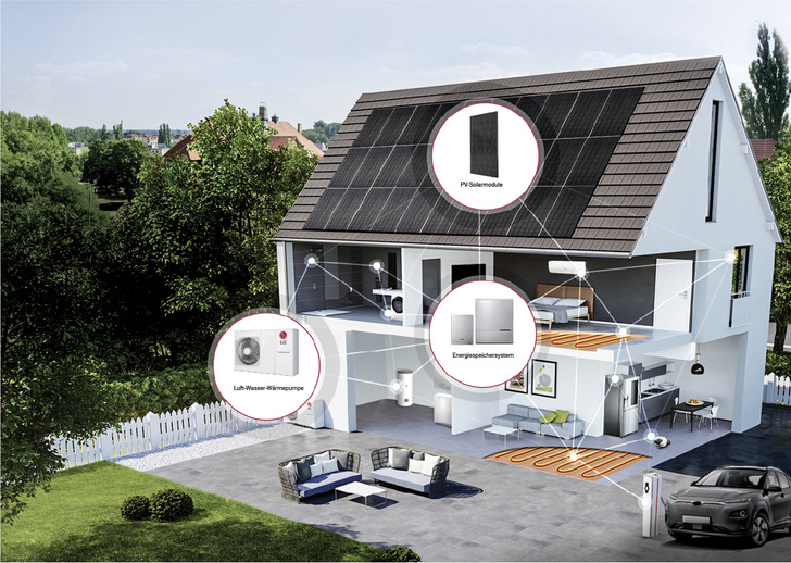 Mit dem Home Energy Package von LG Electronics lässt sich mit einem sektorengekoppelten System Strom und Wärme für Häuser und kleine Gewerbeobjekte erzeugen. Das Paket umfasst Solarmodule NeON R, das Energiespeichersystem ESS Home 8 / 10 zur Zwischenspeicherung überschüssiger Sonnenenergie und die Luft-Wasser-Wärmepumpe Therma V zur Raumheizung und Warmwasserbereitung. Weil das Energiespeichersystem und die Wärmepumpe direkt miteinander kommunizieren, benötigen Hausbesitzer keine zusätzliche Hardware. Sie können das gesamte System komfortabel über die ThinQ-App bedienen und haben die im Speicher verfügbare Energie jederzeit im Blick. Das Energiemanagement ist auf den effizienten Eigenverbrauch des durch die Solarmodule erzeugten Stroms ausgelegt. Die einzelnen Komponenten erreichen eine hohe Effizienz und Zuverlässigkeit. Jede Produktgruppe umfasst mehrere Geräteoptionen, dadurch lässt sich das Paket auf die individuellen Energiebedürfnisse abstimmen.