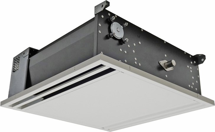 Unauffällig, aber wirkungsvoll ist das Deckeneinbaugerät UVC SterilVentilation von LTG zur Verringerung der aerosolbedingten Virenlast im Raum. Auf der Basis von Gebläsekonvektoren und mit einer Luftmenge von zunächst ca. 250 m³/h kann das gesamte Volumen eines 60 m² großen Raumes zuverlässig ein- bis zweimal pro Stunde entkeimt werden. Für größere Räume oder höhere Anforderungen lassen sich mehrere der deckenintegrierten Kassettengeräte kombinieren. In Kürze soll es auch eine Baugröße mit ca. 600 m³/h sowie weitere Gehäusevarianten zur Decken- und Wandmontage bzw. steckerfertigen Aufstellung geben. Das Umluftgerät nutzt UV-C-Niederdruckstrahler, die bei Covid-19-Viren eine Entkeimungsrate von 99,99 Prozent erzielen, aber auch bei Grippeerregern, Bakterien oder Pilzen hochwirksam sind. Das Gerät saugt Raumluft an der Decke ab, führt die Luft an dem UV-C-Strahler vorbei und bringt sie nach der Entkeimung gezielt mit einem Deckenstrahl wieder in den Raum ein. Dabei entsteht eine Luftwalze für die wirksame Durchspülung des Raumes. Im Normalbetrieb wird ein Schalldruckpegel von ca. 35 dB(A) erzeugt. Abhängig von der Nutzung können Anwender auch eine erhöhte Luftleistung wählen, der Schalldruckpegel liegt dann bei ca. 43 dB(A). Es müssen keine kontaminierten Filter getauscht werden. Ein Leuchtmittelwechsel ist nach ungefähr 16 000 Betriebsstunden erforderlich.