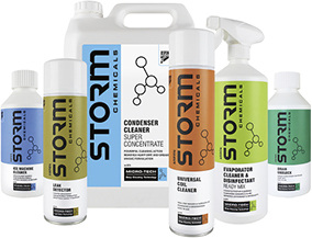 Reinigungs- und Pflegemittel Storm“ von Malessa & Schüller für die Kälte- und Klimatechnik sichern die Anlageneffizienz, schützen die Gesundheit, halten sauber und dienen dem Service. Die mit einer Tiefenreinigungstechnik arbeitenden Produkte sind für anspruchsvolle Bedingungen und Reinigungsorte entwickelt worden, z. B. für Deckenkassetten. Die Produkte wirken mikrobiologisch unter der Schmutzoberfläche, sind sicher in der Anwendung, für den Anwender und die Umwelt. Effizient reinigen lassen sich auch Wärmeübertrager: Entfernt werden Verschmutzungen, die den Wärmeübergang behindern und damit die Anlageneffizienz verschlechtern. Vor allem beim Einsatz von Lamellenpaketen kann es zu Nachteilen bei der Durchströmung und bei der Wärmeabgabe kommen. Das betrifft Verdampfer und Verflüssiger von Kälte- und Klimaanlagen genauso wie Rückkühler oder Kühltürme. Zur Prävention, Reinigung, Desinfektion, als Fettlöser und für den Oberflächenschutz sind die Reinigungsmittel als Konzentrat und gebrauchsfertig erhältlich. Weitere Produkte dienen zur Reinigung von Kondensatwannen, für Anlagengehäuse, für Lüftungskanäle sowie für Luftfilter. Für die Luftbehandlung kann eine Serie als Geruchsneutralisierer verwendet werden. Darüber hinaus gibt es Sonderreiniger sowie Produkte für die Lecksuche im Kältekreis. www.malessa-schueller.de