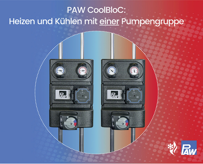 Die Pumpengruppen CoolBloC können sowohl zum Heizen als auch zum Kühlen eingesetzt werden. Dazu ist die Pumpe für unterkühlte Medien ausgelegt, je nach Ausführung von Grundfos bzw. Wilo für Medientemperaturen von -10 bis +95 °C. Ebenso sind weitere Komponenten an die Anforderungen angepasst. Dazu zählen die kondensat- und oxidationsfesten Armaturen, die thermische Trennung vom Mischer zur Vermeidung von Kondensat aus der Elektrotechnik und Dichtlippen in der aus EPP, die bis 130 °C formbeständig ist. Der CoolBloC C 31 wird in Anlagen bis 46,5 bzw. 50 kW für die Boilerladung und für den gleitenden Heizbetrieb eingesetzt. Der CoolBloC C 34 eignet sich für Anlagen bis 43 bzw. 48 kW im mischergeregelten Heiz- und Kühlbetrieb. Hier verfügt der 3-Wege-Mischer über einen variabel einstellbaren Bypass von 0 bis 50 %. Beide Ausführungen werden in den Nennweiten DN 25 und DN 32 angeboten.