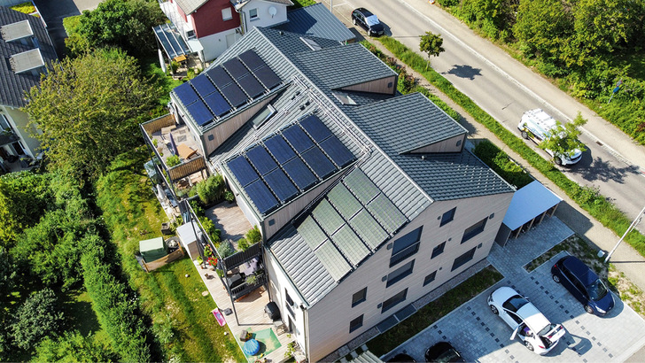 Das Erweiterungsset AllQ modifiziert den Solekreis der ratiotherm Wärmepumpe WP Max-LoQ und erweitert damit deren Einsatzgrenzen. Dadurch kann die Wärmepumpe Umweltwärme von -15 bis hin zu 55 °C verarbeiten. Über kurze Zeit ist ein Quellspektrum bis zu 70 °C möglich. Diese Bandbreite nutzt ratiotherm beispielsweise für ein synergetisches System aus Wärmepumpe und Sonnenkraft. Hierfür werden PVT-Luft-Sole-Kollektoren von Consolar als lautlose Energiequelle der modifizierten WP Max-LoQ verwendet. Die Wärmepumpe arbeitet mit Kältemitteln, die eine Vorlauftemperatur von bis zu 72 °C erlauben und ist damit für Bestandsgebäude geeignet.