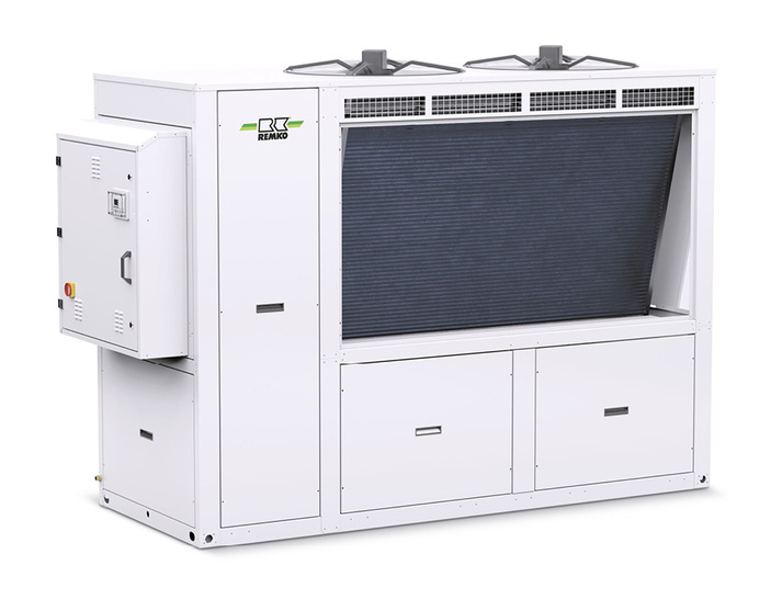 Remko bietet mit dem KWP 600 Eco einen weiteren luftgekühlten Kaltwasser-Erzeuger mit 60 kW an. Von 46 bis 246 kW reicht die Spannweite, die mit den Geräten der KWP-Eco-Reihe abgedeckt wird. Durch die Wärmepumpenfunktion kann der KWP kühlen und heizen. Dadurch lässt er sich auch in hybride Anlagen einbinden. Er punktet insbesondere mit seinem modularen Aufbau. So lässt sich das Grundmodell mit zwei Kits zu einer leisen bzw. sehr leisten Variante ausbauen. Der Schalldruckpegel sinkt dann von 54,7 auf 50,9 oder auf 48,3 dB(A). Zu den weiteren optionalen Features zählen der Sanftanlauf, der Speicher von 200 l oder die Schaltschranklüftung. Mit diesen Möglichkeiten kann der KWP 600 Eco exakt auf die Anwendung konfiguriert werden, bis hin zum Hydraulikkreis. Darüber hinaus ist er wahlweise mit Standard- oder Hochdruckpumpe erhältlich. Über das integrierte 4-Wege-Umschaltventil findet der Wechsel zwischen Kühlen und Heizen statt.