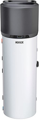 Bei der Brauchwasser-Wärmepumpe HPDU monobloc von Rotex ist eine Kombination aus Wärmepumpentechnik und Warmwasserspeicher (200 und 260 l) realisiert. Sie ist besonders leise und erreicht die Effizienzklasse A+. Es sind drei unterschiedliche Betriebsarten (Auto, Eco und Boost) möglich. Bei der Betriebsart Eco wird ausschließlich erneuerbare Energie genutzt. Läuft die Wärmepumpe (Stellfläche 0,32 m²) auf Auto, wird bei Bedarf die erneuerbare Energie durch einen Elektroheizstab unterstützt, was den Komfort unter allen Bedingungen erhöht. Im Boost-Betrieb erfolgt die Warmwasserbereitung in kürzester Zeit, um möglichst schnell große Mengen Warmwasser zur Verfügung zu stellen. Ein Schutzzyklus bei allen drei Betriebsarten sorgt für hygienisch einwandfreies Trinkwasser. Bei der 260 l-Speichervariante kann ein Solarsystem wie Solaris direkt eingebunden werden. Die Wärmepumpe kann auch an eine PV-Anlage angeschlossen oder als Hybridvariante mit einem Öl-Brennwertkessel oder Holzkessel kombiniert werden. Die Regelung erhöht automatisch die Warmwasser-Solltemperatur, sobald genügend Energie aus der Photovoltaik vorhanden ist. Dadurch wird die erzeugte elektrische Energie für die spätere Verwendung thermisch gespeichert. www.rotex.de