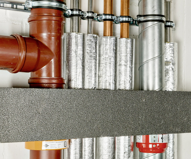 Bei der Installation von Rohrleitungssystemen ist die Einhaltung der Brandschutzvorgaben zentral. Für eine einfache und sichere Verlegung und ein Maximum an Nutzraum sind Rohrleitungssysteme von Sanha in den unterschiedlichsten Kombinationen und Dimensionen brandschutztechnisch auf Nullabstand geprüft und zugelassen. Dadurch können die Rohre ohne Mindestabstand zueinander oder zu anderen Leitungen durch raumabschließende Bauteile geführt werden. Eine Brandweiterleitung wird somit für definierte Zeiträume (Feuerwiderstandsklassen R 30 – R 120 bei Decken sowie R 90 und R 120 bei Wänden) unterbunden. www.sanha.com