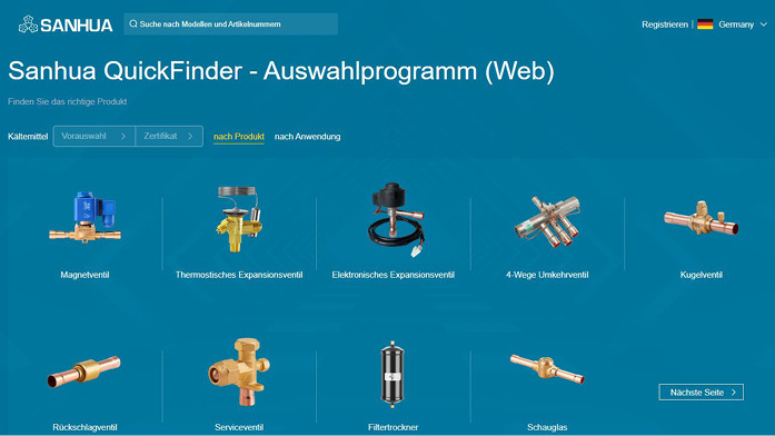 Sanhua Selector Programm bietet Vorschläge für die Auswahl von Komponenten in Kälte- , Wärmepumpen- und Klimaanlagen. Die Auswahl basiert auf den Betriebsbedingungen des Anwenders oder auf Standardbetriebsbedingungen des zu berechnenden Systems.