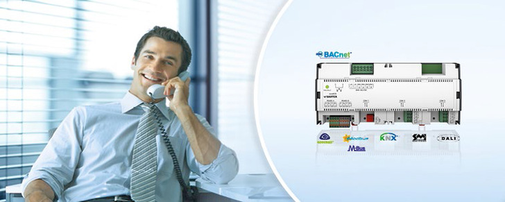 Sauter hat seinen BACnet/IP-Raumcontroller ecos504/505 um zusätzliche Schnittstellen ergänzt: EnOcean, DALI, KNX, SMI, Modbus und M-Bus unterstützen nun sowohl die Integration in das Gebäudemanagementsystem als auch in die Automation der Primäranlagen. Beim Raumcontroller handelt es sich um einen frei programmierbaren BACnet-Building-Controller (B-BC). Er ist Teil der modularen EY-modulo 5-Systemfamilie, die alle im Bereich der technischen Gebäudeautomation geforderten Funktionen abdeckt – von der präzisen Klimasteuerung und -regelung über diverse Alarmierungsfunktionen, bis hin zur komfortablen Raumbuchungsanwendung. Über die DALI-Schnittstelle lassen sich Leuchten, Präsenzmelder und Helligkeitssensoren einbinden, über EnOcean-Funk-Interfaces bis zu acht drahtlose Raumbediengeräte und Sensoren. Per Modbus direkt auf dem Raumcontroller lassen sich beispielsweise elektronische Ventile für den dynamischen hydraulischen Abgleich im Raum integrieren.