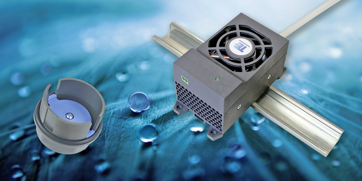 Das Entfeuchtungsgerät MDH-030 von Telemeter für Schaltschränke oder Gehäuse mit elektrischen Komponenten ist kompakt, arbeitet effektiv und zuverlässig bei der Entfeuchtung bzw. Trockenhaltung des Gehäuseraums. Der Entfeuchter mit Peltiertechnik lässt sich entweder auf einer Hutschiene oder mittels Schrauben befestigen. Durch die intelligente Ein- bzw. Ausschaltautomatik ist das Gerät nur dann im Betrieb, wenn Entfeuchtungsbedarf besteht. Die dabei gesammelte Feuchtigkeit wird mithilfe eines Silikonschlauchs abgeführt. Bei Gehäusen mit IP-Schutz lässt sich ein optionales Entwässerungselement einsetzen. Dieses hat eine Membran, mit der Nässe nach außen transportiert wird, ohne dabei den IP-Schutz des Gehäuses zu beeinträchtigen. Das Entfeuchtungsgerät erzielt eine Entfeuchtungsleistung von 250 ml / 24 h und ist für 12 VDC oder 24 VDC Betriebsspannung zu haben.