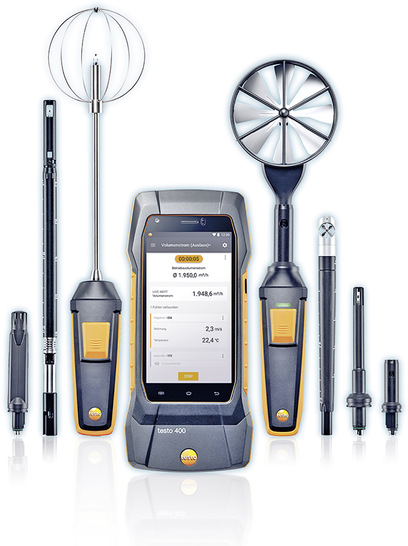 Testo 400 ist ein Universal-Messgerät für alle Klima- und Lüftungsanwendungen. Durch das breite Sonden-Sortiment sind auch Klimamessungen mit hohen Anforderungen an Präzision sowie Messungen in Flüssigkeiten oder von Lichtverhältnissen möglich. Mithilfe einfacher Smart-Touch-Bedienung, Datenmanagement vor Ort, digitalem Sonden-Konzept und intelligentem Mess-Assistenten lassen sich Messaufgaben schneller erledigen. Klar strukturierte und geführte Messmenüs leiten durch die gesamte Messung. Je anspruchsvoller diese ist, desto mehr unterstützt der Mess-Assistent bei Konfiguration, Durchführung und Ergebnisbewertung. Auf dem 5"-HD-Display werden alle Messdaten übersichtlich dargestellt. Es ist eine vollständige Dokumentation der Messdaten direkt vor Ort möglich. Die Messprotokolle inklusive Messwerten und Kundendaten lassen sich per Mail versenden und werden zudem im Gerät gespeichert. Für eine ausführliche Analyse und ein Reporting ist die Software Data Control beigefügt. Wegen der großen Auswahl an Sonden lassen sich alle Klima-, Lüftungs- und Behaglichkeitsparameter präzise und zuverlässig messen. Dazu zählen digitale Bluetooth- und Kabelsonden, NTC- und TE-Temperaturfühler (Typ K) sowie fünf digitale PT100-Sonden. Das Starten und Stoppen der Messung ist mit nur einem Klick auf die Taste direkt am Handgriff der Sonde möglich. Alle Sonden lassen sich während des laufenden Betriebs des Messgeräts tauschen. www.testo.de