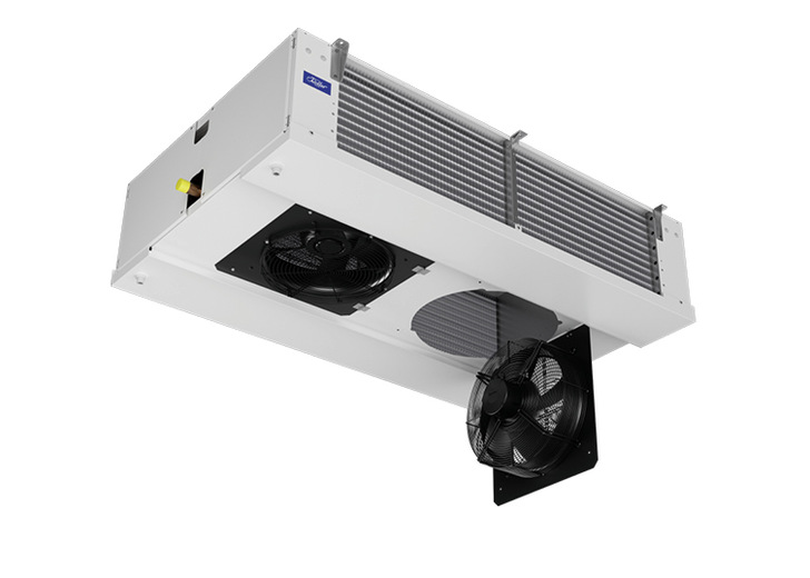 Mit der Baureihe DHNI bietet Roller einen dual-ausblasenden Deckenluftkühler für industrielle Anwendungen. Der DHNI ist mit der aktuellen EC-Ventilatortechnik, dem AxiEco von ebm-papst ausgestattet. Der AxiEco bietet eine ausgeprägte Druckstabilität (Bereifungsbildung) bei einer gleichzeitig hohen Energieeffizienz. Der EC-Antriebsmotor kann leistungsabhängig drehzahlgeregelt werden und gewährleistet einen geräuscharmen Betrieb. Im Tiefkühlbetrieb ist ein Festfrieren des modernen Laufrads bei Eisbildung unwahrscheinlich und auch die Vereisungsgefahr des Luftansauggitters wird strömungstechnisch minimiert. Für Direktverdampfung sind Versionen für HFC-Kältemittel und für CO2 (PS 80 bar) verfügbar, sowie weitere Varianten für Kälteträger (Sole).