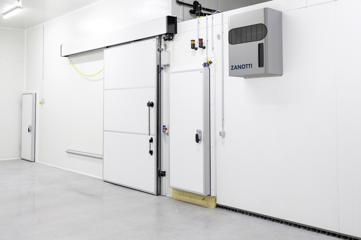 Von der Daikin-Tochter Zanotti gibt es nun für Kühlräume kompakte Monoblock-Geräte zur Wandmontage mit dem A2L-Kältemittel R-455 A (GWP < 150). Derzeit gibt es drei Modelle für die Normal- und zwei für die Tieftemperaturkühlung. Das schwer entflammbare Kältemittel R-455 A besteht zu 75,5 Prozent aus R-1234 yf, zu 21,5 Prozent aus R-32 und zu 3 Prozent aus R-744. Die Kälteleistung und das mögliche Kühlraumvolumen entsprechen in etwa dem herkömmlicher Kältemittel. Die Gehäusemaße der R-455 A-Geräte entsprechen den der Vorgängergeräte. Der Kühlprozess findet innerhalb einer Einheit statt, die Kälteleistung ist gegenüber den Vorgängerversionen höher. Die Kältemittelfüllung liegt unter 2,5 kg. Im Inneren des Monoblocks ersetzt ein hermetischer Rotationsverdichter, gekoppelt mit einer Flüssigkeitseinspritzung, die Hubkolbenverdichter früherer Geräte. Dieser Verdichter-Typ ist mechanisch robuster, verbessert die Leistung und Zuverlässigkeit und bewirkt geringere Austrittstemperaturen sowie einen leiseren Betrieb. Das thermostatische Expansionsventil, das anstelle einer Kapillare verwendet wird, hält die Oberflächentemperatur in der gesamten Betriebsumgebung und über die Temperaturkurve hinweg stabil, was zu einer insgesamt verbesserten Leistung und Zuverlässigkeit führt.