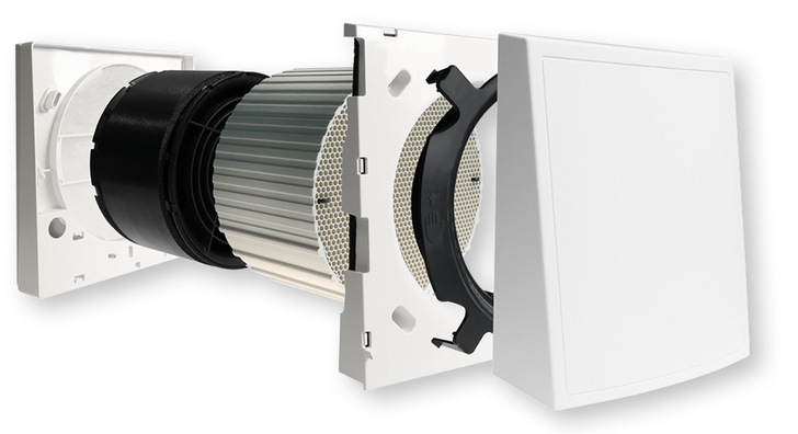 Der Systemhersteller Zewotherm hat sein Sortiment an dezentralen Lüftungssystemen überarbeitet. Die Weiterentwicklung ist als Produktreihe SmartFan 2.0 erhältlich. Die neue Lüftungsgeräte-Generation ist sowohl als funkbasierte als auch als kabelgebundene Version erhältlich. Der Wärmerückgewinnungsgrad liegt bei 87 % und der Schalldruckpegel bei 10 dB (A). Die Abmessungen lassen eine Installation ab einem Wandaufbau von 205 mm zu. Der Volumenstrom beträgt bei beiden Varianten maximal 55 m³/h. Die Luftführung des Vorwärmetauschers wurde optimiert (PreTech). Weiter wurde der Axialventilator neu konzipiert. Er besteht aus gezackten, sich überlagernden Flügeln (VenTech). Aufgrund dieser Bauweise bleibt der Eigenschall gering. Gleichzeitig wird die Aerodynamik verbessert.