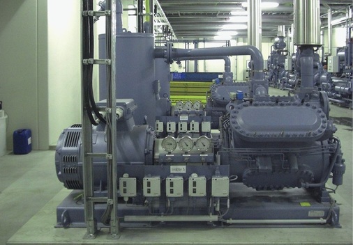 Ferner wird die Ausführung der Verdichter eine weitere Absenkung der Verflüssigertemperaturen noch unterhalb von 22 °C zulassen, so dass nochmals eine Absenkung des Strom- und Wasserbedarfs zu erwarten ist. Im praktischen Betrieb der Kälteanlage sind weitere Erkenntnisse für eine Optimierung zu erwarten, die in vergleichbaren Systemen umgesetzt werden können. U. B. -