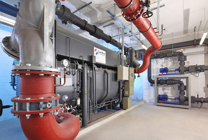 Das integrierte Rechenzentrum benötigt ganzjährig eine Kühlleistung von 400 kW. Diese Abwärme nutzt die Absorptionswärmepumpe für die Heizung und Warmwasseraufbereitung. Dabei stellte die Auflage, Vorlauftemperaturen von 70 °C zu fahren, eine Herausforderung dar, was eine eigens für dieses Projekt hergestellte Absorptions-wärmepumpe von Clima Net erforderte. Sie entstand in Zusammenarbeit mit Shuangliang, einem der weltweit größten Hersteller von Absorptionstechnik.