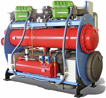 Bei den energieeffizienten Kühlsystemen bewirken mehrere Verdichterund ein großdimensionierter Speichertank, dass nur die benötigte Leistung abgerufen wird. Abgedeckt wird ein Kühlleistungsbereich von 1 bis 175 kW. Der geschlossene Wasserkreislauf lässt eine präzise Temperaturregelung im Bereich von 10 bis +30 °C zu. Ein im Tank integrierter Verdampfer verbessert die Temperaturstabilität und den Wirkungsgrad.
