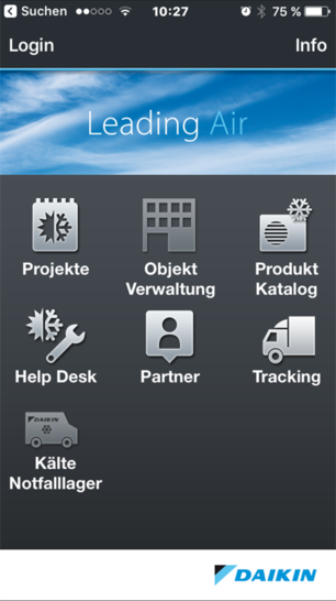 Die App wurde speziell für Kälte- und Klimafachbetriebe entwickelt und ermöglicht den Zugriff auf wichtige herstellerspezifische Informationen bei Verkauf, Installation und Service. Sie vereinfacht die Objektverwaltung innerhalb eines Betriebs und hilft außerdem bei der Planung neuer Anlagen. Zusätzlich ist der komplette Daikin Produktkatalog jederzeit im Offline-Betrieb zugänglich. Als weitere Funktion gibt die Störcodesuche ausführliche Informationen zu Ursache und Behebung der Störung direkt an der Anlage. Diese Funktion, inklusive Lösungsvorschlägen, ist ebenfalls offline verfügbar und durch das Update nun auch ohne Login vom Fachhandwerker in vollem Umfang auslesbar. Auch andere Funktionen der App sind ohne Login abrufbar: Auslegung von Split, Mulit-Split und Altherma-Systemen, Fehlercodes des Help Desks, Partnersuche und Tracking (Sendungsverfolgung).