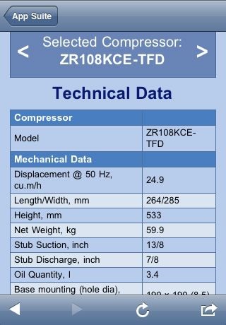 Modelldaten können wie gewohnt im PDF-Format gespeichert werden. Die Zusammenfassungen werden dabei häufig im Rahmen von Produktberatungen verwendet. Bereits bekannt ist die Möglichkeit, Listen für Produktfamilien wie Scrollverdichter oder Verflüssigungssätze zur Außenaufstellung zu erstellen und mithilfe der Auswahl von Kältemitteln oder Betriebsbedingungen das passende Produkt zu finden. Die Produktliste kann nach Kriterien wie Leistung, Energieverbrauch oder Leistungszahl sortiert werden, wobei Modellreihen genauso umfassend analysiert werden können, wie in der als Download verfügbaren Software. Für Smartphones wurde eine eigene Version entwickelt, damit Benutzer auch unterwegs auf Select 8 zugreifen können. Nach der Anmeldung werden dabei sofort die zuletzt gespeicherten Einstellungen geladen.