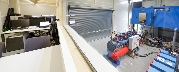 Eine der Quantum-Kältemaschinen für den Iran war die erste, die am vergangenen Freitag den so genannten FAT (Factory Acceptance Test) auf dem neuen Prüfstand durchlaufen hat. Engie Refrigeration hat in der neuen Unternehmenszentrale in Lindau zunächst drei Prüfstände für Kundenabnahmen und interne Entwicklungsabläufe installiert: Einen Innenprüfstand für wassergekühlte Kältemaschinen mit einer Kälteleistung von bis zu 3,5 MW, einen für niedrigere Kälteleistungen von bis zu 1,5 MW und einen Außenprüfstand für luftgekühlte Kältemaschinen. Der Außenprüfstand kann 1,6 MW Kälteleistung testen. Im Jahr 2017 wird der Innenprüfstand für höhere Kälteleistungen erweitert. Dann können Kältemaschinen bis zu 6 MW getestet werden. Die Prüfstände sind an die Produktion angeschlossen und sehr effizient geplant, so dass weniger Rüstzeit benötigt wird, erklärt Jochen Hornung. Außerdem wird eine moderne Regelungssoftware und Datenerfassung für die Prüfstände eingesetzt. Tests können von einem zentralen Kontrollraum durch einen Mitarbeiter durchgeführt und überwacht werden. Außerdem ist im neuen Prüffeld ein 24 Stunden-Betrieb für Langzeittests in der Validierung von Maschinen auch ohne die Überwachung durch einen Mitarbeiter möglich. Wir können hier FATs und Entwicklungstests sehr effizient durchführen. Das ist einer der großen Vorteile an unserem neuen Standort, sagt Hornung.