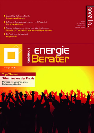 Die vollständige Auswertung der Umfrage ist in der Ausgabe 10/2008 des Gebäude-Energieberaters enthalten. Probehefte können unter www.geb-info.de angefordert werden. Weitere Themen der Ausgabe: