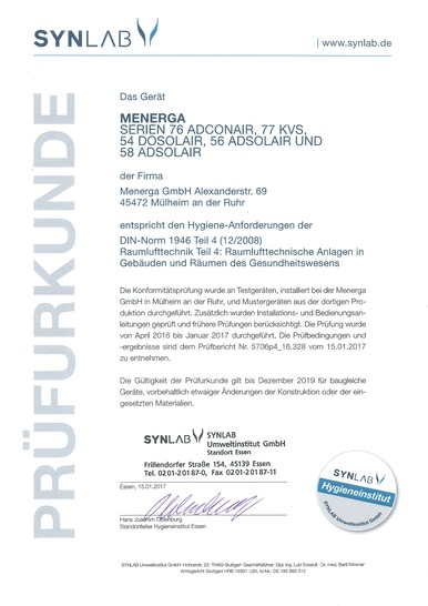 Die Prüfung wurde vom Hygieneinstitut Synlab aus Essen durchgeführt. Es überprüft unter anderem die Einhaltung hygienischer Anforderungen an raumlufttechnische Anlagen. (RM)
